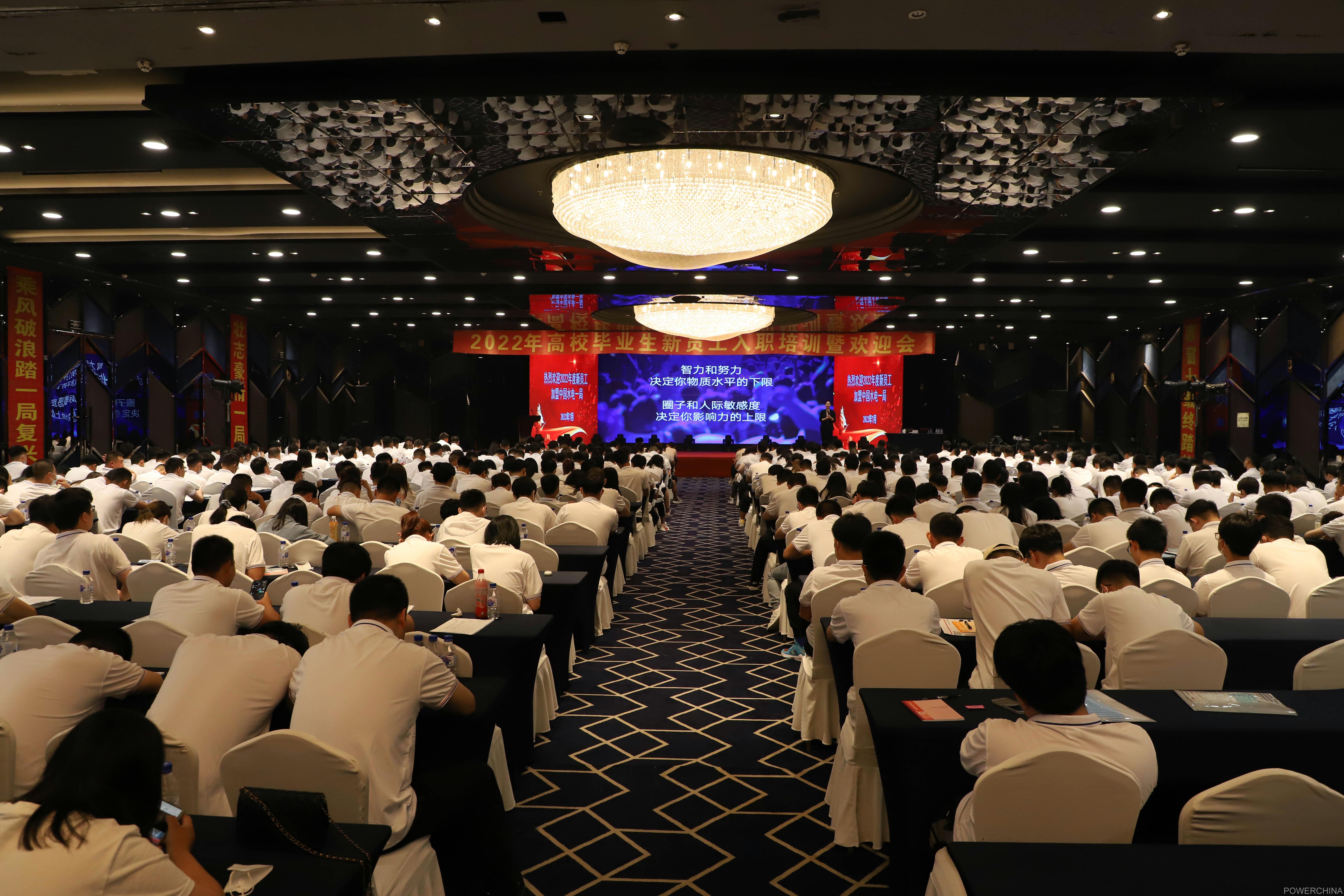 在水电一局入职培训暨欢迎会上,600名新员工正在认真聆听“老前辈”的经验,“老前辈”结合自身的工作经历,详细介绍了水电一局的发展历程、建设实力和战略规划,对企业在光伏发电、抽水蓄能、轨道交通、国际工程等领域的发展潜力进行分析,为新员工职业生涯规划指明方向,并对公司职业发展通道进行解读。