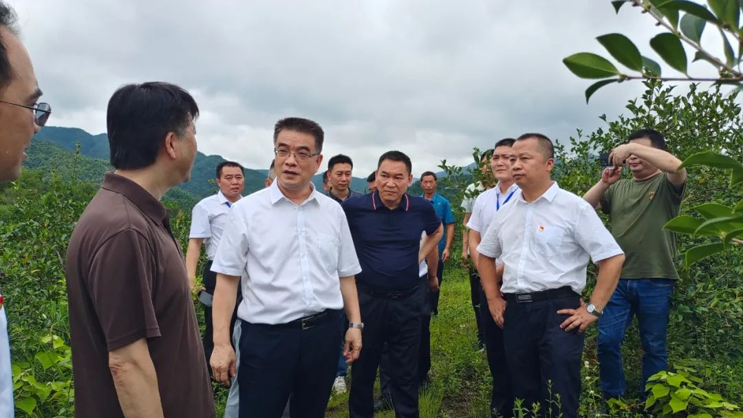 ▲调研余坪镇深坑村油茶基地