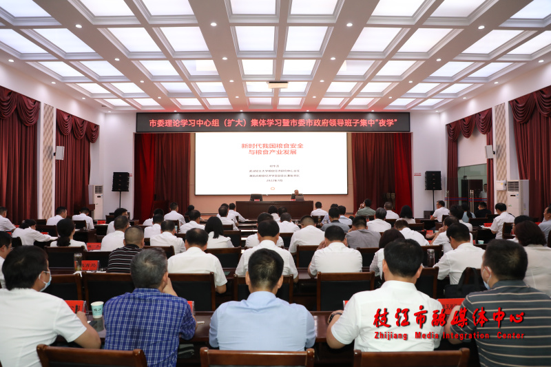 枝江融媒(记者 谢逸舟 方伟)7月7日,市委理论学习中心组(扩大)集体学习暨市委市政府领导班子集中“夜学”举行,邀请武汉轻工大学粮食经济研究中心主任祁华清围绕《新时代粮食安全背景下粮食产业高质量发展的思考》主题开展授课。市委副书记、市长黄芳帅主持学习。
