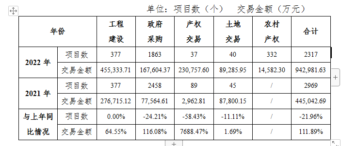 (一)工程建设项目交易情况