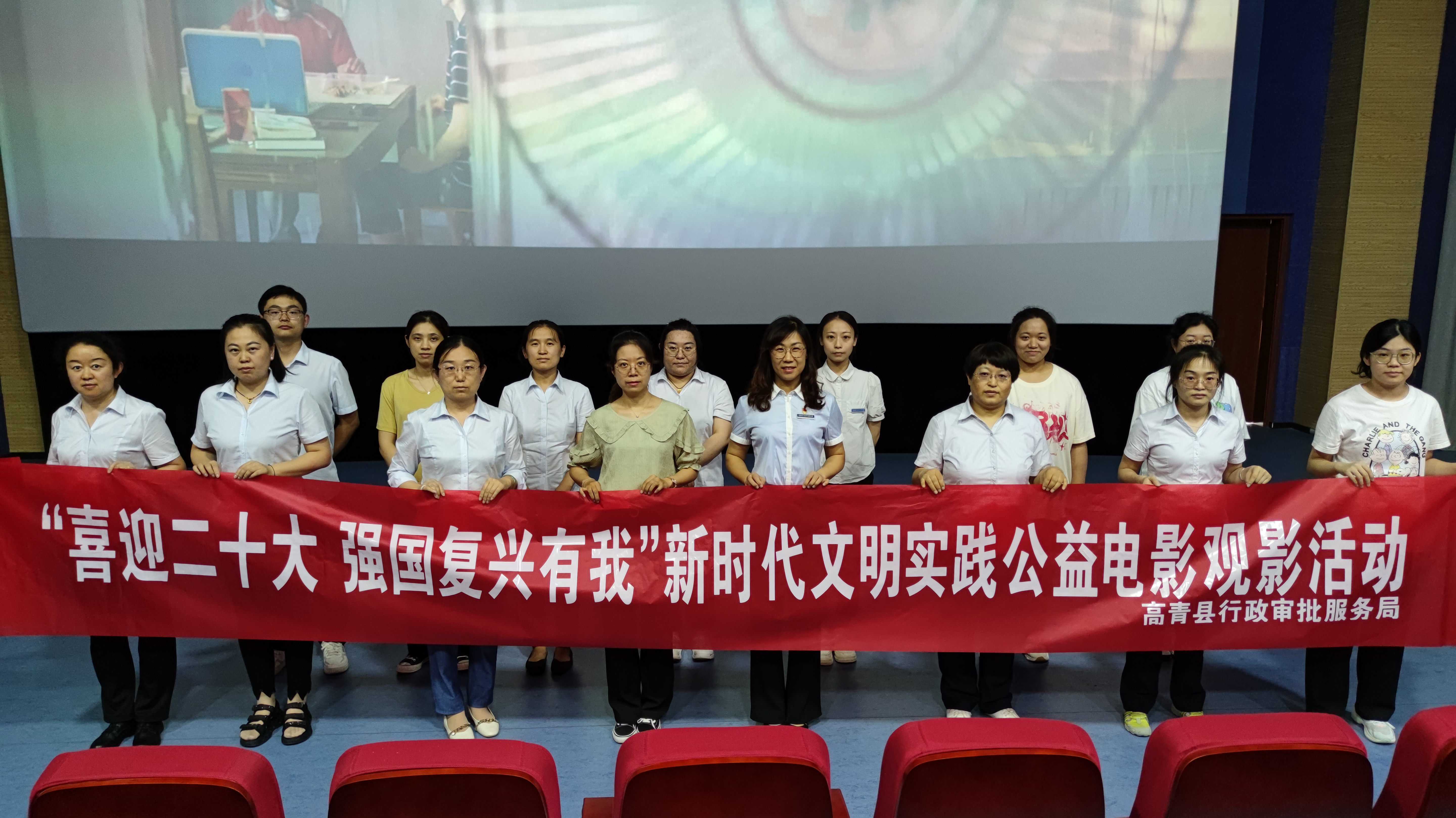 高青县行政审批服务局积极组织“喜迎二十大 强国复兴有我”新时代文明实践公益电影观影活动
