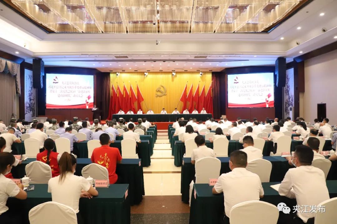 6月29日,夹江县贯彻落实习近平总书记来川视察重要指示精神和省第十二次党代会精神“奋进新征程·建功新时代”动员大会在峨眉山月饭店召开。会议以深入贯彻落实习近平总书记来川视察重要指示精神和省第十二次党代会精神为主题,总结夹江“5.11”疫情处置相关工作,激励和动员全县干部群众更加紧密地团结在以习近平同志为核心的党中央周围,不忘初心、牢记使命,开拓进取、攻坚克难,为全面推进全县经济社会发展而努力奋斗。