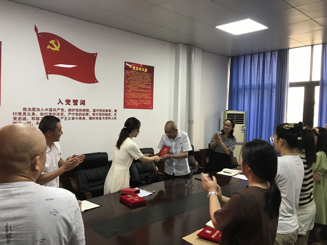 会上,全体党员佩戴党徽,举起右手,握紧拳头,在领誓人的带领下,面向党旗,重温入党誓词。句句铿锵的誓言,震撼着在场的每一位党员,提醒大家要不忘初心、牢记使命,激发了大家的荣誉感和使命感,增强了大家忠于党、忠于祖国、忠于人民的政治品格和爱国情怀。