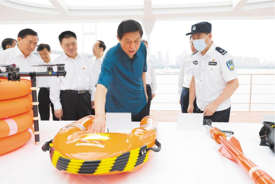 7月3日,栗战书在汉口江滩码头考察长江大保护工作情况。(新华社发)