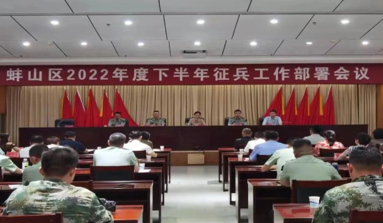 6月30日,蚌山区召开2022年度下半年征兵工作部署会议,区委书记、区人武部党委第一书记桑延慧出席会议并讲话。市军分区动员处处长茹卫东出席,区委常委、人武部政委刘跃主持,区领导乔健、曾鸣及区征兵工作领导小组成员、区征兵办公室成员、各乡街党(工)委书记、专武干部参加。