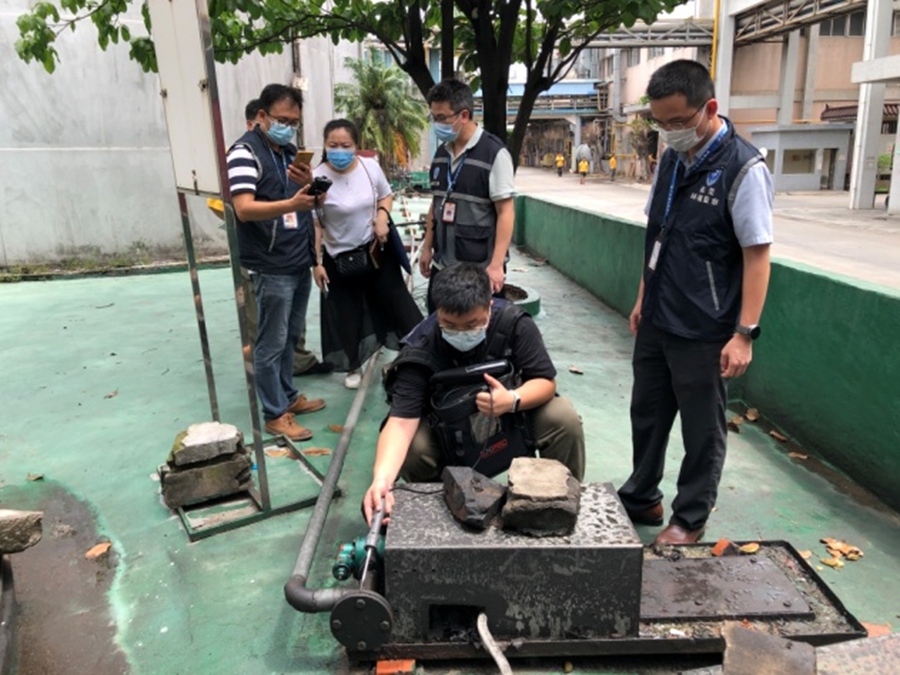 ▲执法人员使用PID检测仪、FID检测仪检测密封点是否存在废气泄漏