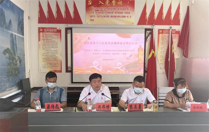 汪伟樟强调,要发动全员学习,营造良好氛围。村党支部要用更接地气的方式开展党代会精神宣传,必须求真务实,将精神要义原原本本地传达到党员中去。普通党员要紧跟而上,当好“讲解员”,向群众宣讲好省第十二次党代会精神。要优化人居环境,建设幸福家园。要坚持以人民为中心的发展思想,统筹推进,标本兼治,从群众反映最强烈、最迫切的突出问题入手,把农村环境的"里子"做足做扎实,推动沙湾村人居环境面貌不断改善提升,让群众生活更美好。要立足自身优势,加快沙湾发展。村“两委”要站在全区全镇发展大局中,立足自身优势,紧紧围绕“产业兴旺、生态宜居、乡风文明、治理有效、生活富裕”的总要求,按照美丽乡村建设总体规划,发展品牌产业、建设品位村湾、培养品质农民,推进城乡融合高质量发展。要加强共建共治,构筑幸福家园。要充分发挥村民在乡村治理中的主体性作用,让乡村治理工作更加接地气、贴民心、顺民意,要因地制宜,以文化为着力点,在党建引领村湾治理促进乡村振兴的道路上,打出“文化特色牌”,让村庄的环境美起来,村民精神富起来、生活甜起来。要做好基层党建,巩固战斗堡垒。要抓好抓实农村基层党建工作,推进全面从严治党向基层延伸,巩固党在农村的执政基础,宣传党的主张、贯彻党的决定、领导基层治理、团结动员群众,推动基层党组织成为改革发展的坚强战斗堡垒。