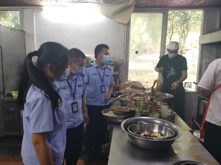 加强监督检查,及时消除隐患。执法人员提前介入,重点检查2家承担餐饮服务单位的食品安全管理制度建立、执行,现场布置、设施设备运行,原材料采购、环境卫生等情况,充分利用食品快速检测设备进行检测,及时排查消除食品安全隐患。
