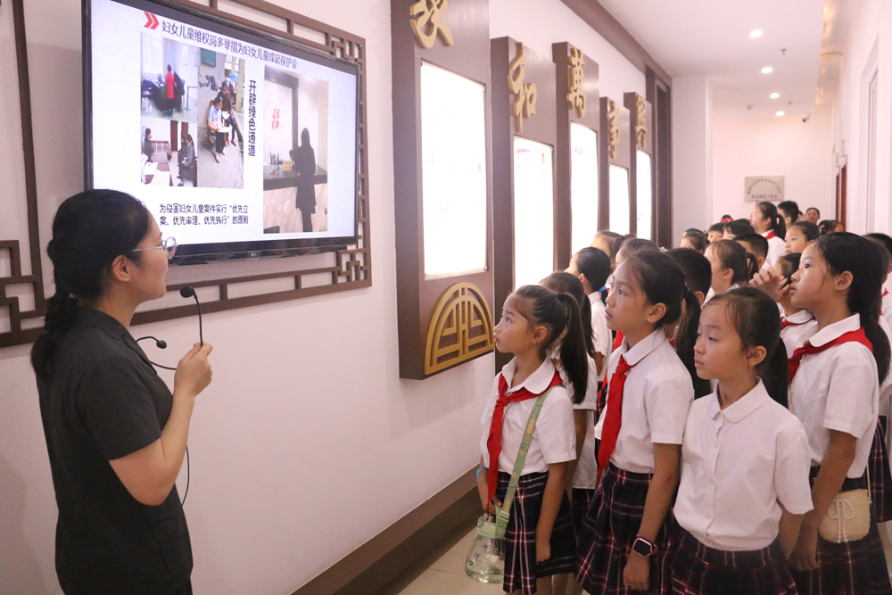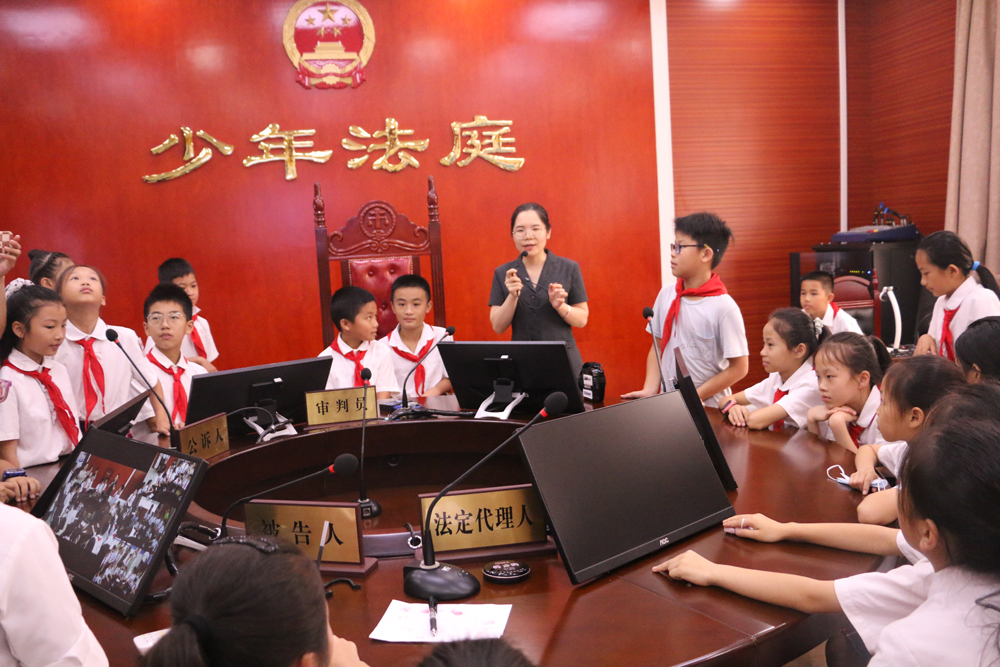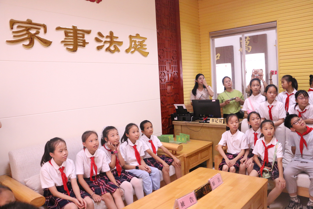 活动中,工作人员带领同学们参观县人民法院的立案大厅、妇女儿童维权岗、家事法庭和少年法庭等场所,学习预防青少年犯罪法治课,了解青少年犯罪的特点及类型等知识;开展“接力学法比赛”“与法童行 趣味连连”“法治绕口令活动”等拓展实践活动,让同学们在活动中感受学法用法的乐趣,加深对法律知识的理解。(张茜)