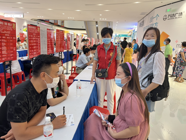 为持续做好疫情防控期间“保民生、促就业”工作,助推农民工、城镇失业人员、脱贫劳动力、退役军人、因疫情等原因从外省返乡的人员、高校毕业生等重点群体就业,舒城县人力资源和社会保障局2022年舒城县就业促进暖心行动人才对接专场招聘会于7月10日在万达广场成功举办,县总工会、县退役军人事务局、县妇联、县残联参与此次招聘会活动。