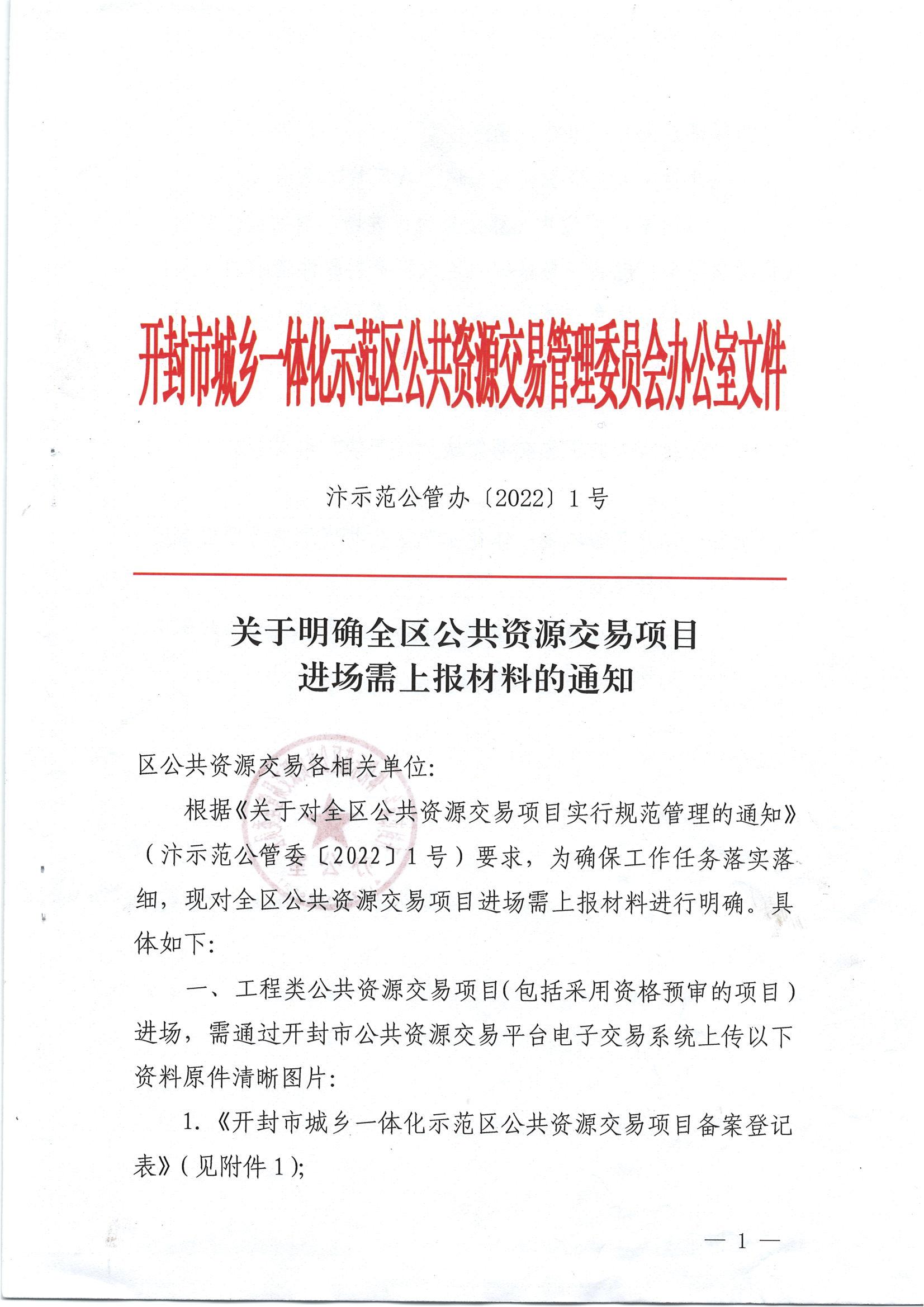 关于明确全区公共资源交易项目进场需上报材料的通知