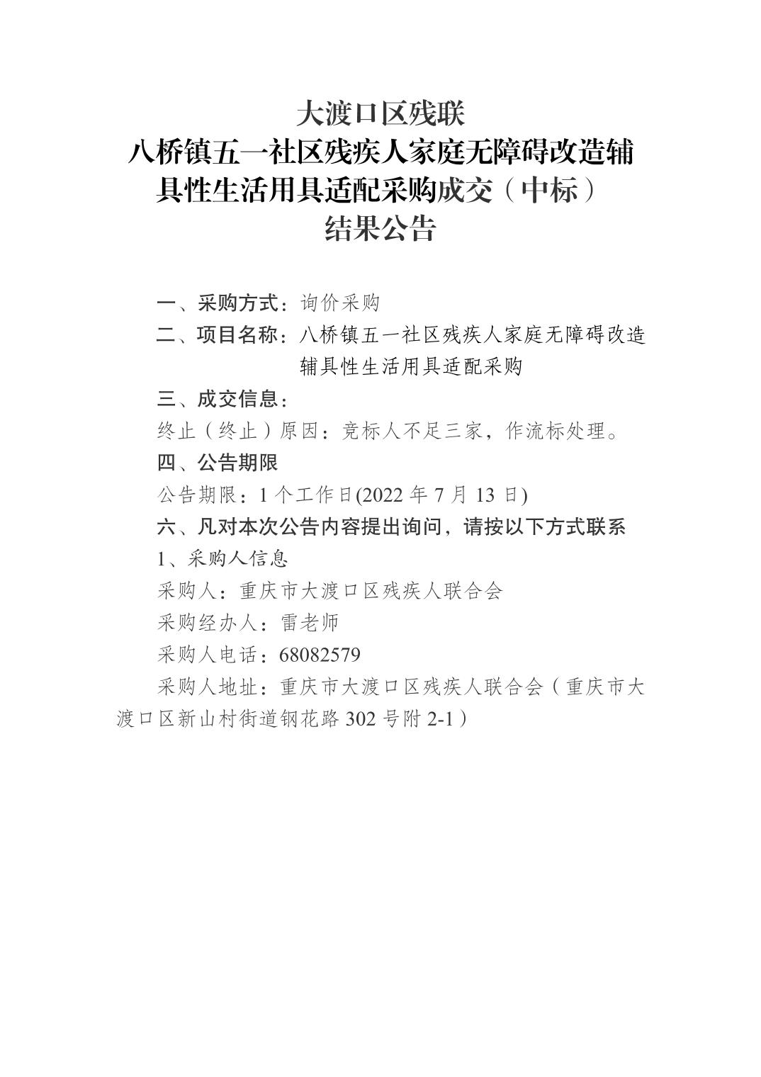 八桥镇五一社区残疾人家庭无障碍改造辅具性生活用具适配采购成交结果公告