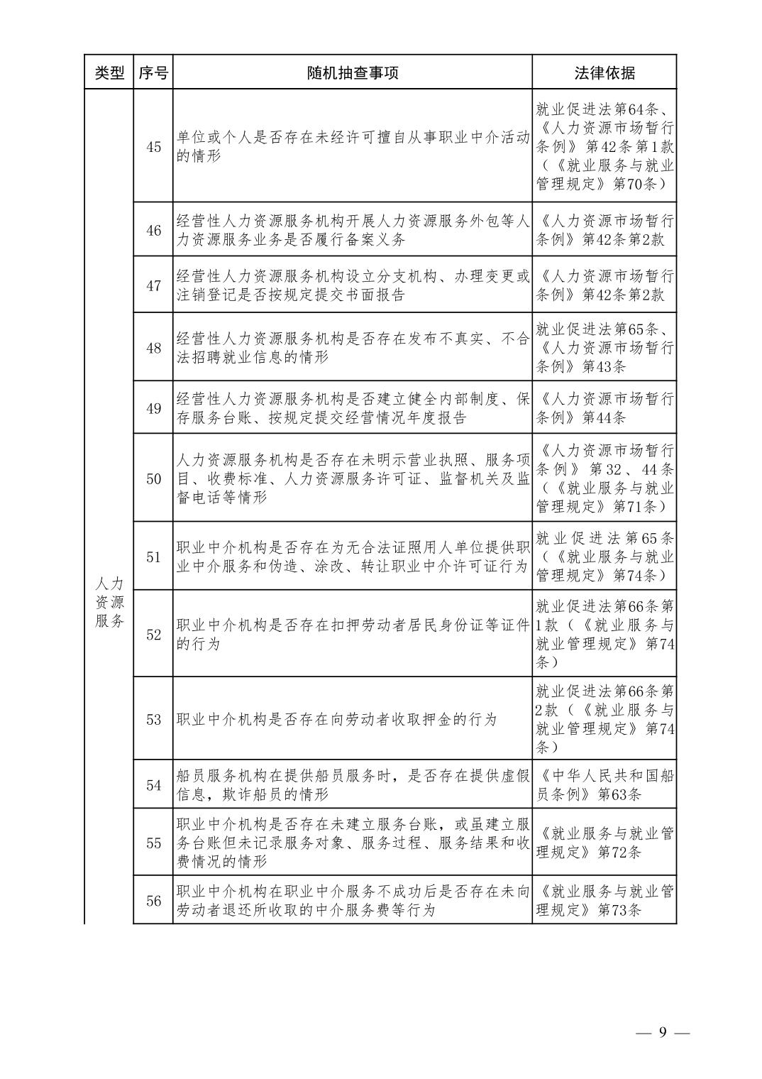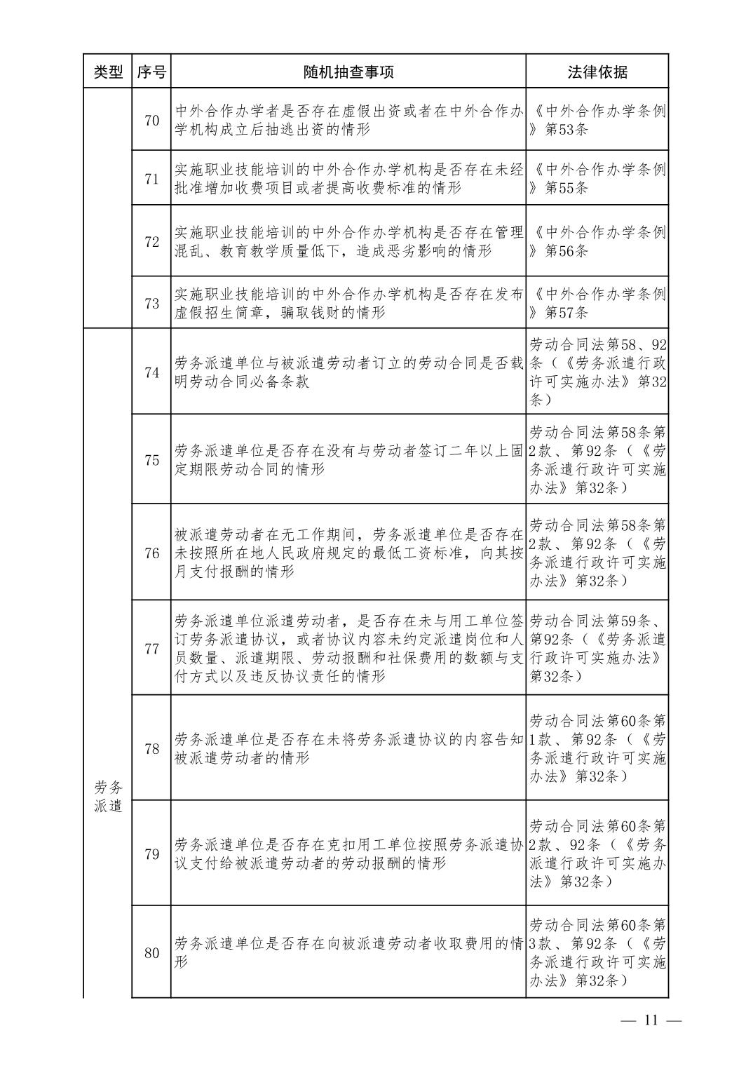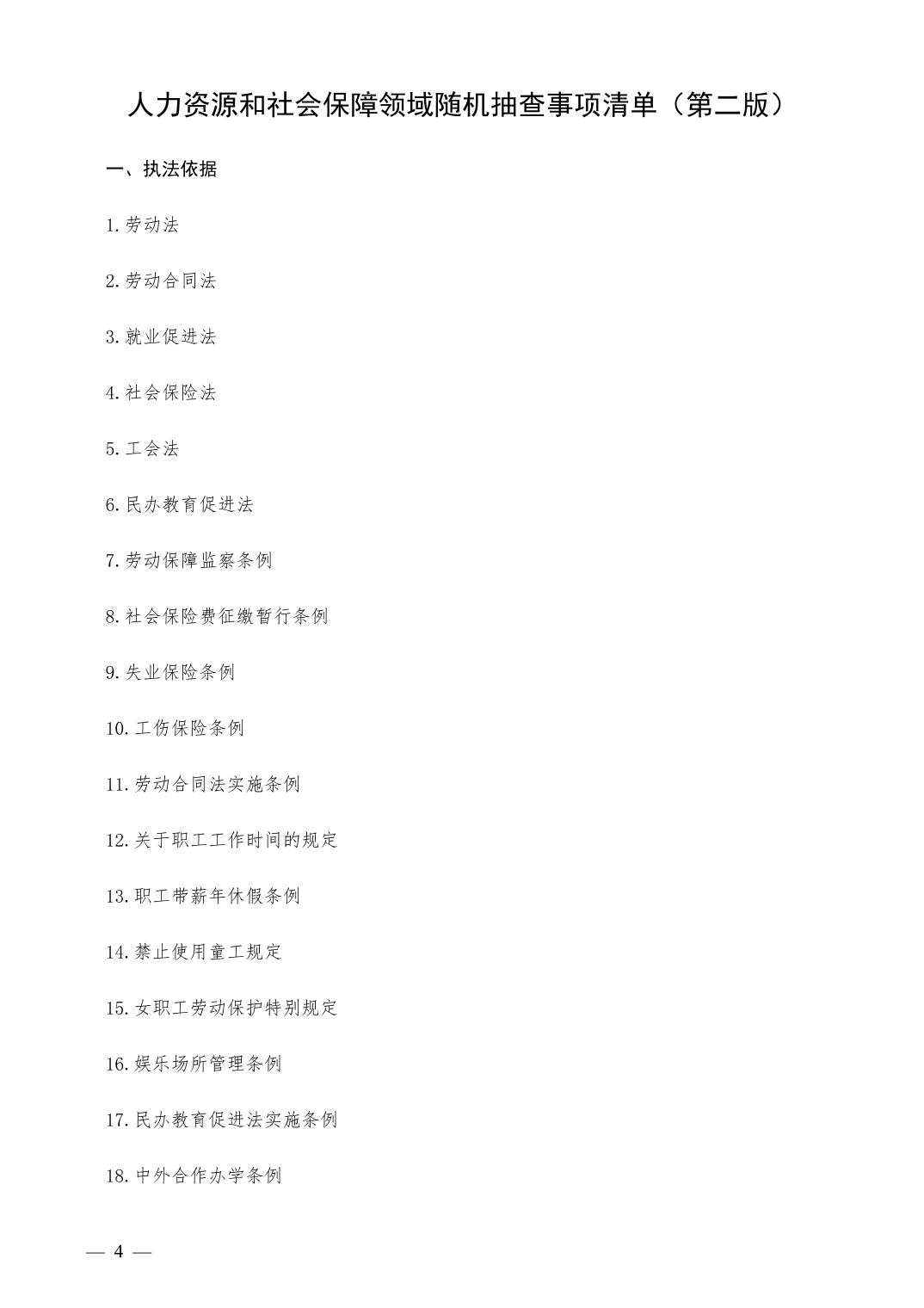 人力资源和社会保障领域随机抽查事项清单(第二版)