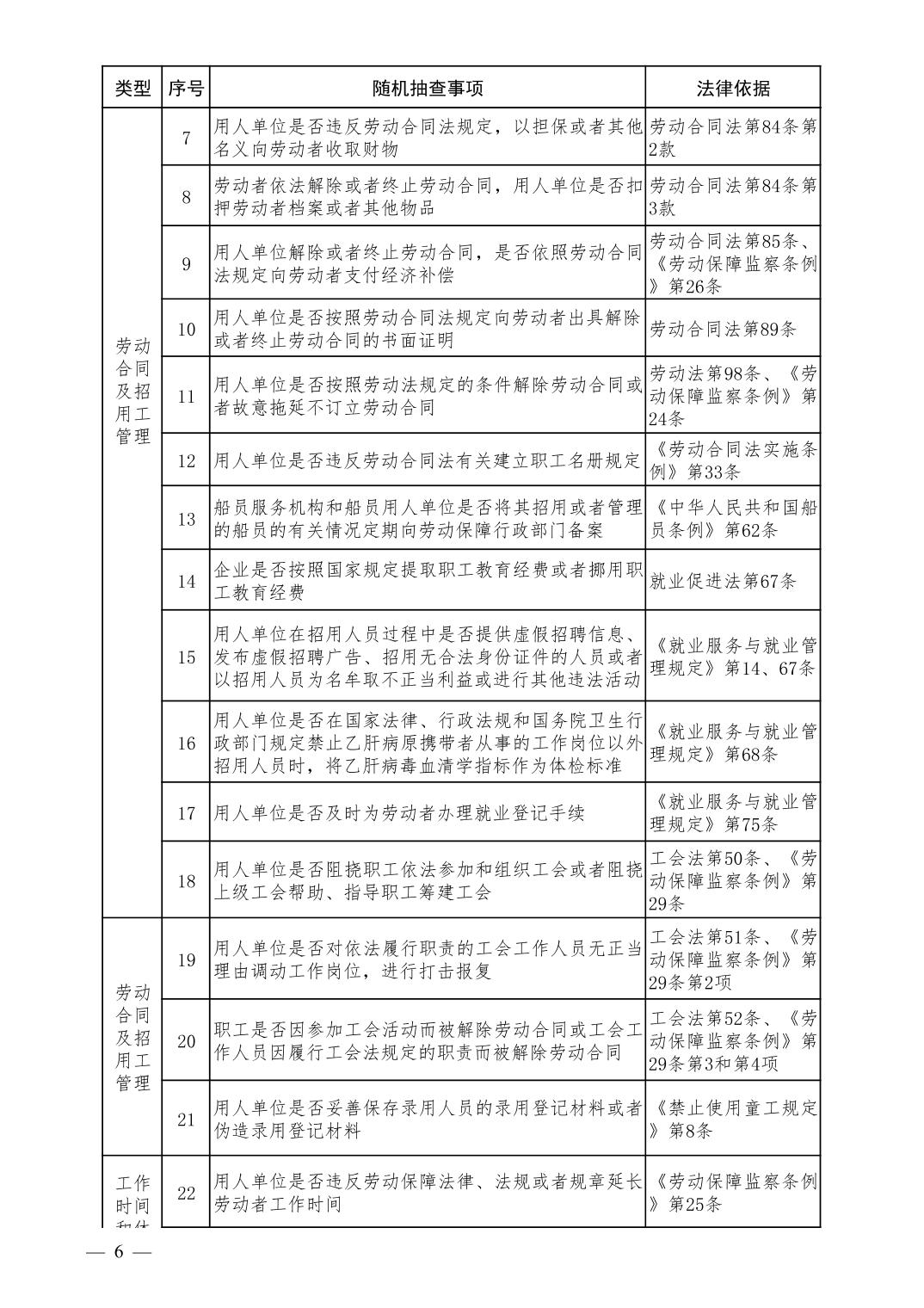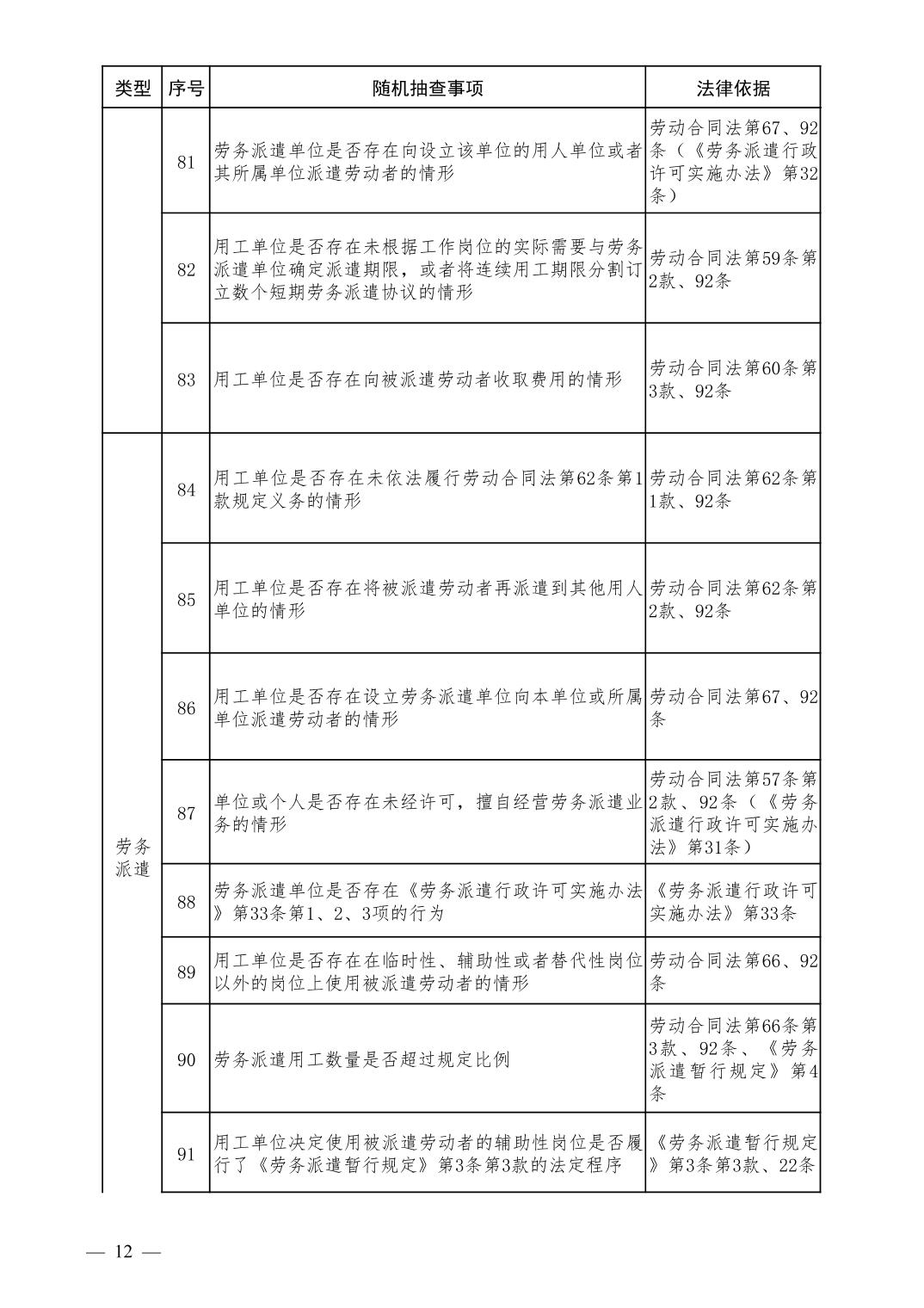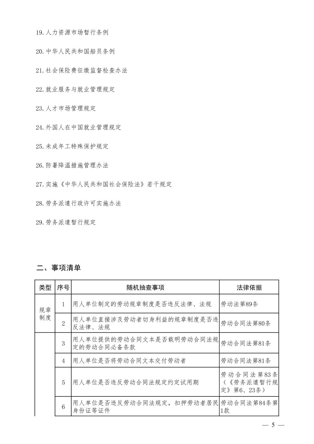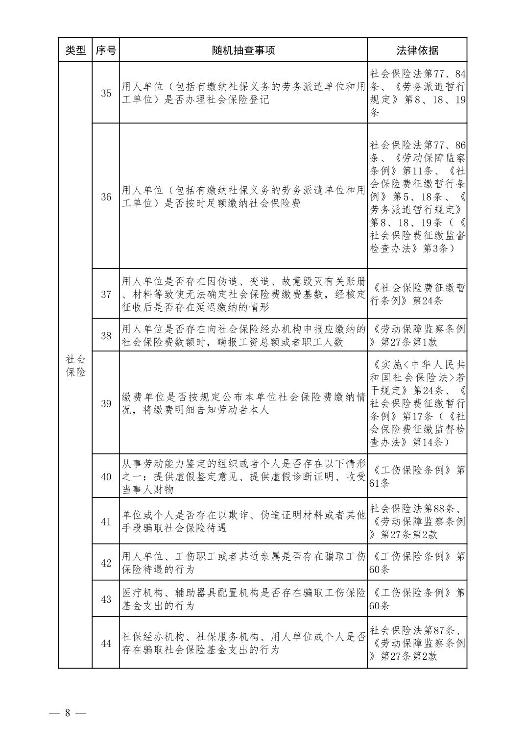 人力资源和社会保障领域随机抽查事项清单(第二版)