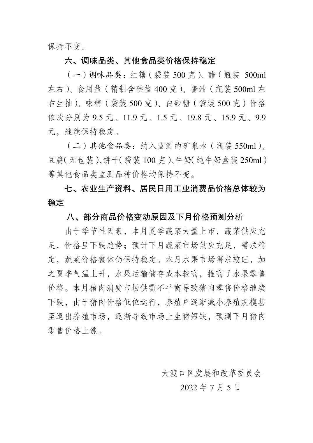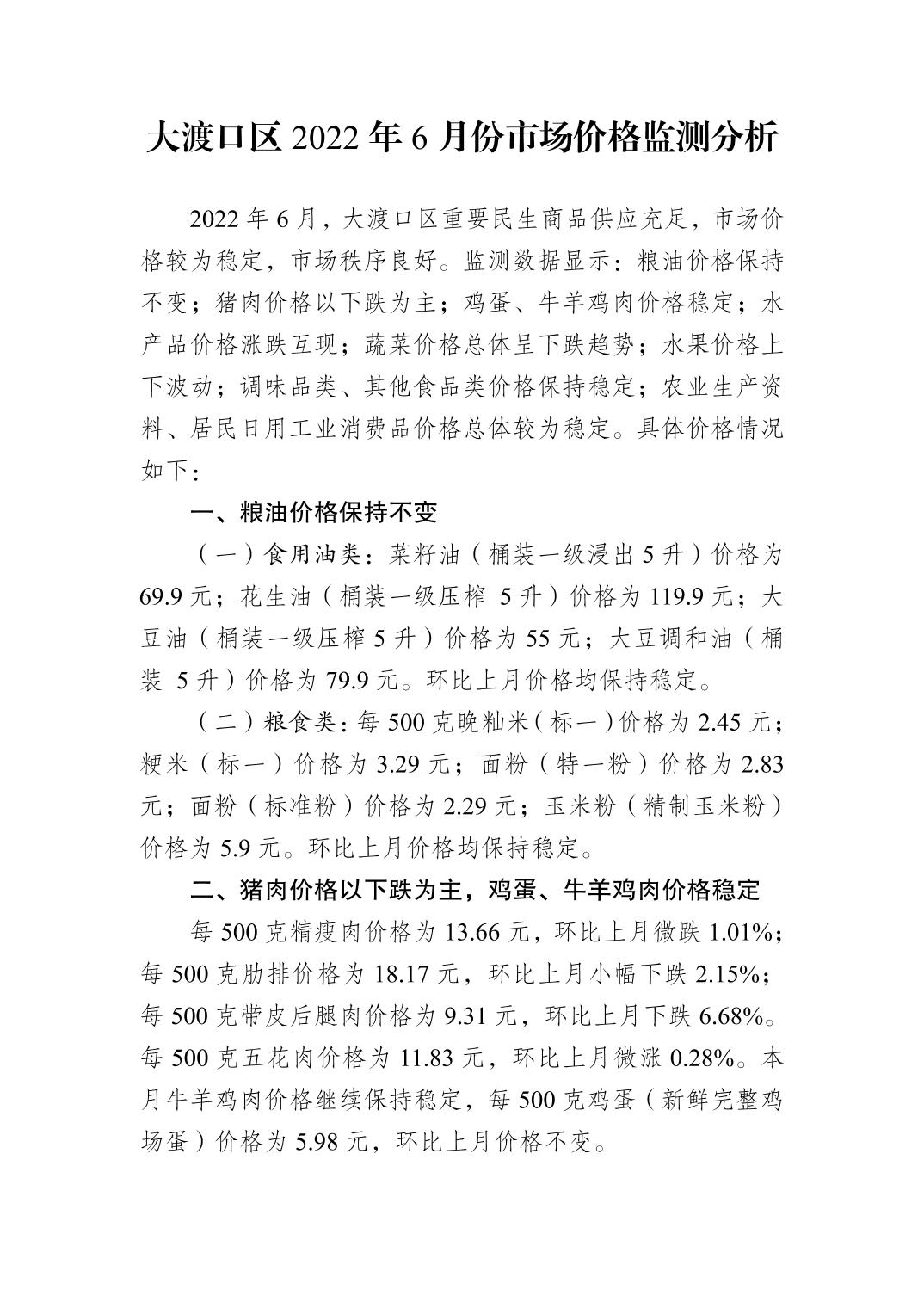 大渡口区2022年6月份市场价格监测分析