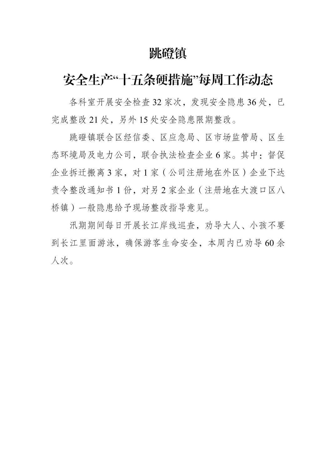 跳磴镇安全生产“十五条硬措施”每周工作动态