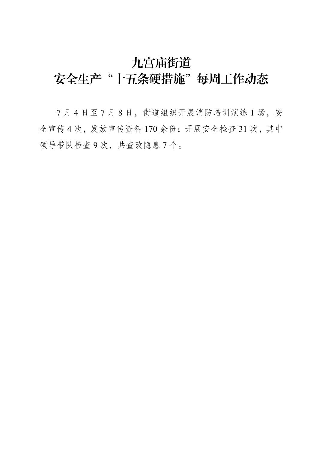 九宫庙街道安全生产“十五条硬措施”每周工作动态