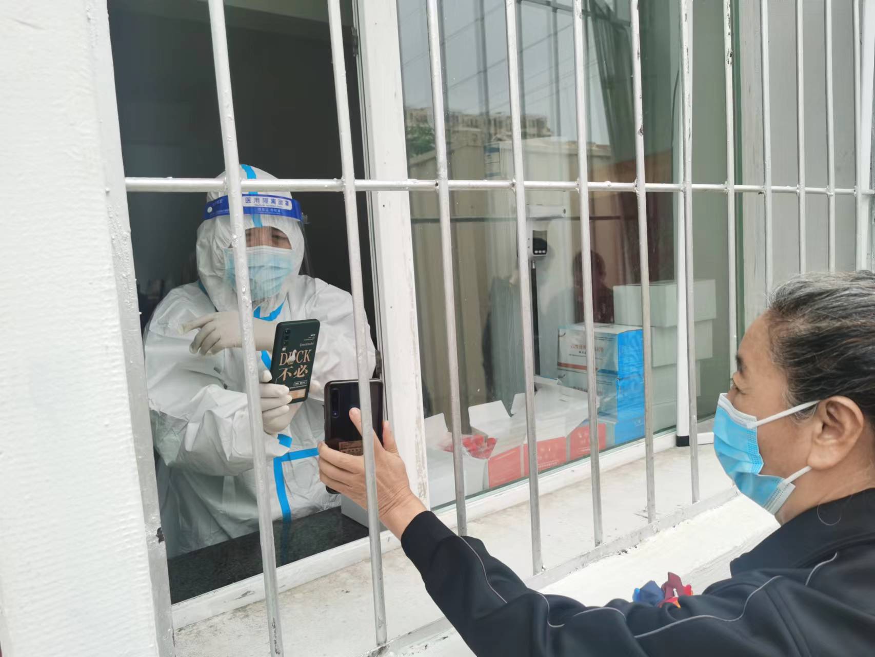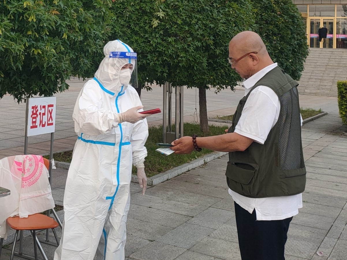 在采样点,我局包保干部与医护人员、社区工作者同心协力共上阵,维持便民核酸采集点现场秩序,引导群众间隔两米有序排队,指导群众打开吉祥码,有条不紊的做好保障工作,确保了核酸检测工作顺利开展。