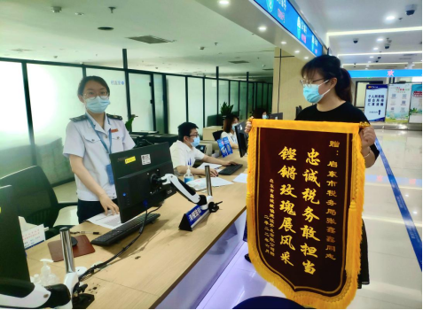 鲜红的锦旗,感谢的话语,折射出税务人员想纳税人所想、急纳税人所急、真诚服务纳税人的优良作风,道出了纳税人对税务部门优质服务的认可信任。启东市办税服务厅将继续秉持“用心倾听 真诚服务”的宗旨,做好促企发展的“服务员”,织起严密的“护税网”,不断优化纳税服务,提升办税质效,以营商环境之“优”保经济发展之“稳”。(林竹青 陈珊)