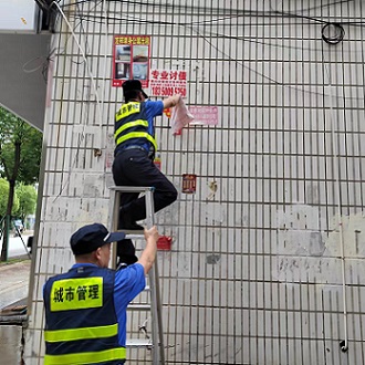 长乐区城建监察大队开展打击整治违规张贴养老诈骗小广告专项行动