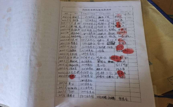 (向阳村农药包装废弃物兑换生活物品台账)