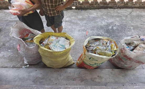 (当地村民收集的几大袋农药包装废弃物)