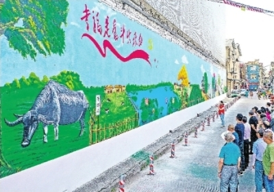 牛棚菜地变商场公园 巨幅墙绘展示70年变迁