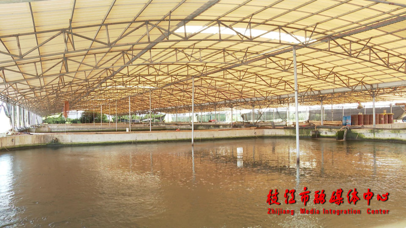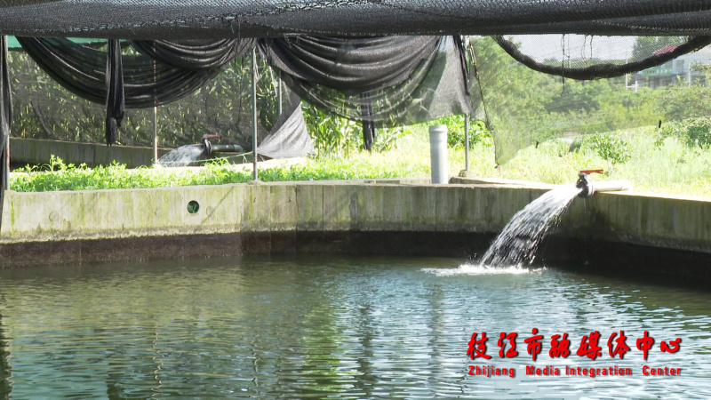 在楚鲟渔业的十数个高位养殖池中,清凉干净的新水正源源不断的送入池中,鲟鱼在池水中欢快游动,看起来丝毫没有受到高温天气的影响。