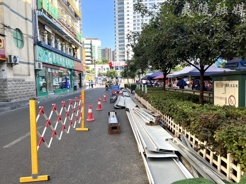当前月宫路为双向两车道,人行道不连续、人车混行造成该路段高峰期拥堵。此次微改造将在原夜市侧绿化带处新建人行道,并加装护栏,有效规范出行秩序,当日已开始进行绿化带施工前的围挡工作。