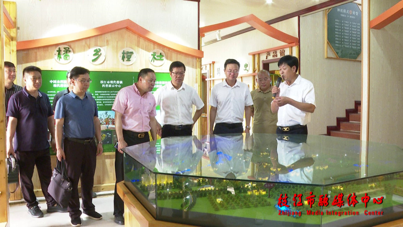 与会人员首先来到董市镇石港桥村北缘柑桔试验站,通过实地考察、听取介绍等方式,详细了解我市精品柑橘采摘园和现代柑橘科普展示厅建设情况。