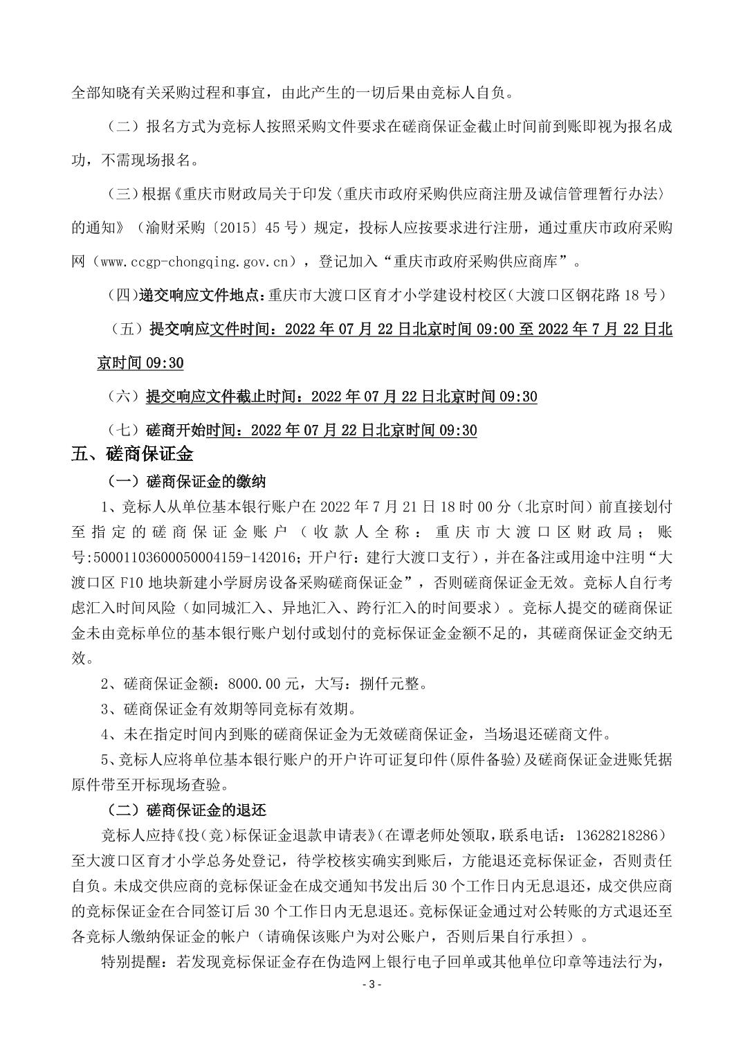 大渡口区F10地块新建小学厨房设备竞争性磋商采购文件