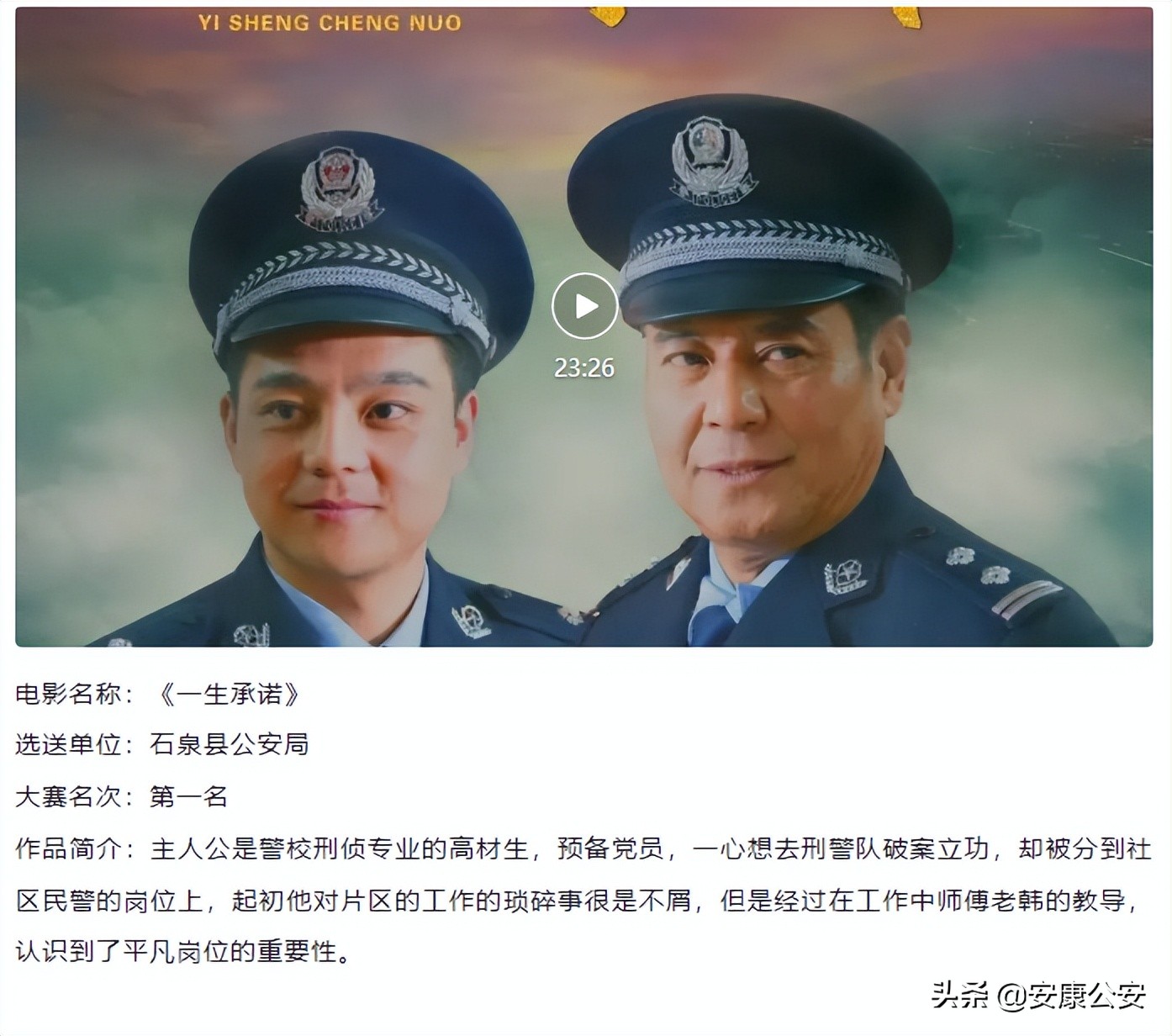打造精品佳作,文化育警谱新篇。安康公安持续加强文化育警,在全市公安机关大力开展“公安好新闻”“十佳通讯员”评选活动,深入推进“红色警营”“活力警营”“幸福警营”三个警营建设,组织开展 “铭记嘱托 忠诚担当”征文、摄影书画比赛,在微信公众号开设“警察文苑”“警察风采”“警察故事”栏目,编发民辅警公安诗歌、散文等文学和摄影作品,不断打造出精品佳作。主题征文《有师如此何其幸》《为你而歌》《最浪漫的事》《携甲入长安 战斗在“疫”线》《写在离别时》《小满似满 小满未满》和微电影《一生承诺》《无悔选择》《风雨平安路》《丢失的沙金》《谎言》《迷途》等,充分展现了全市各级公安机关和广大民辅警绝对忠诚、绝对纯洁、绝对可靠的政治本色,有力彰显了知责于心、担责于身、履责于行的担当精神,生动诠释了以人民为中心、坚持群众路线、全心全意为人民服务的爱民情怀,发扬光大了服从命令、听从指挥、令行禁止的铁警作风,备受广大民辅警喜闻乐见。