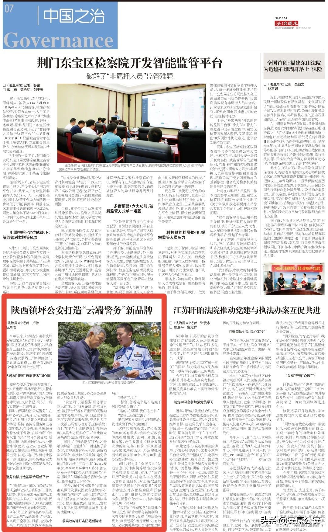 2022年7月法制日报刊发我局《陕西镇坪公安打造“云端警务”新品牌》文章,对镇坪县公安局“云端警务”工作做法进行了报道。