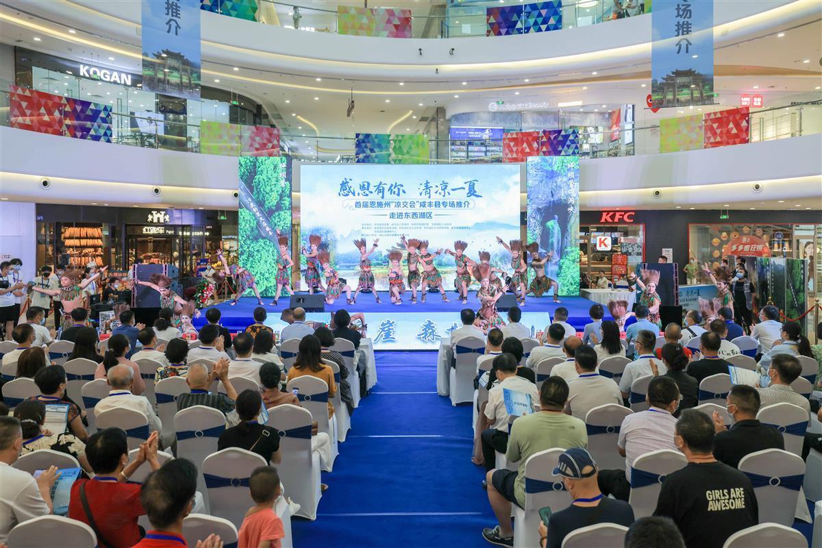 7月23日上午,首届恩施州“凉交会”咸丰县专场推介会走进武汉东西湖区金银湖万达广场。咸丰县委常委、宣传部长田应贵现场邀请江城市民前往咸丰度假旅游作客,感受19℃的夏天。