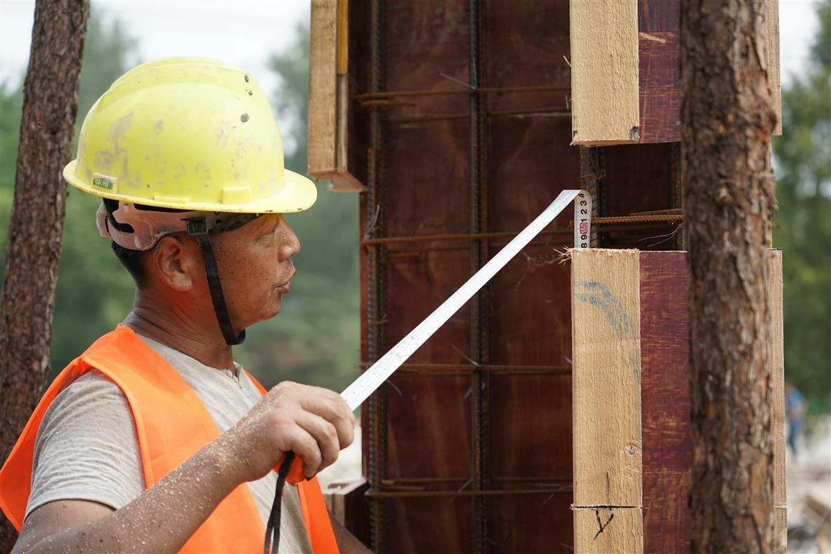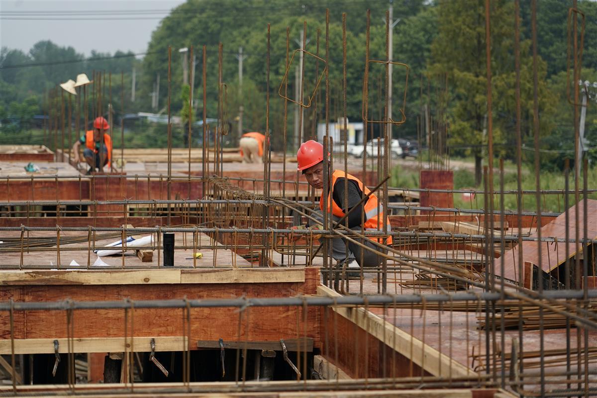 7月21日,在武汉市东西湖区走马岭街良湖新垸农村新社区项目现场,工人们在现场施工。据介绍,良湖新垸农村新社区项目是东西湖区农村人居环境增值提升重点工程,占地面积约68.58亩,项目在良湖垸大队南湖村和毡帽湖村拆除原址上进行新建,规划建筑占地面积有48平方米、96平方米及120平方米三种户型,计划安置良湖垸大队金湖村、银湖村、田湖村、南湖村、毡帽湖村五个村庄145户农户。