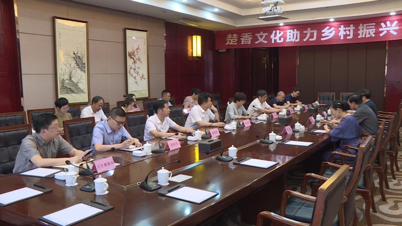 华中师范大学教授、中国楚文化研究专家刘玉堂,武汉大学教授李永凤,四季学知董事长、县研学顾问祝胜华,县领导向兴华、王进参加座谈。(记者 史冲崎)