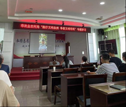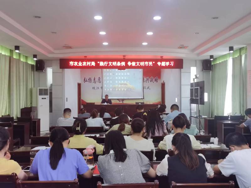 枝江融媒(通讯员 高润杰 马晓洁)近日,市农业农村局召开专题培训会,邀请专业老师对政务摄影摄像专业知识、“践行文明条例,争做文明市民”相关条例、消防安全知识进行专题授课,进一步提升青年干部的业务能力和文明素养,践行新时代文明实践活动。