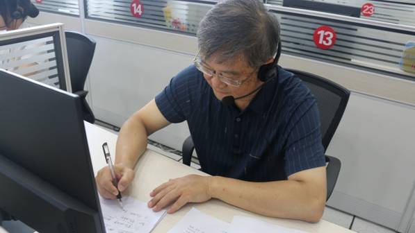 7月22日上午,市经济和信息化局舒广生四级调研员走进统一呼叫中心接听12345热线,倾听群众呼声,了解群众诉求。