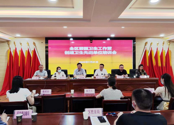 为进一步推进爱国卫生运动,持续改善城乡卫生环境、倡导健康生活方式、提高居民健康素养。7月21日下午,全区爱国卫生工作会暨创建卫生先进单位培训班在区卫健局召开。区人民政府副区长阮诗军出席会议并讲话,市爱卫办专职副主任刘国雄、市卫健委四级调研员钱尼明、市爱卫技术指导办主任黄远霞受邀参加会议。