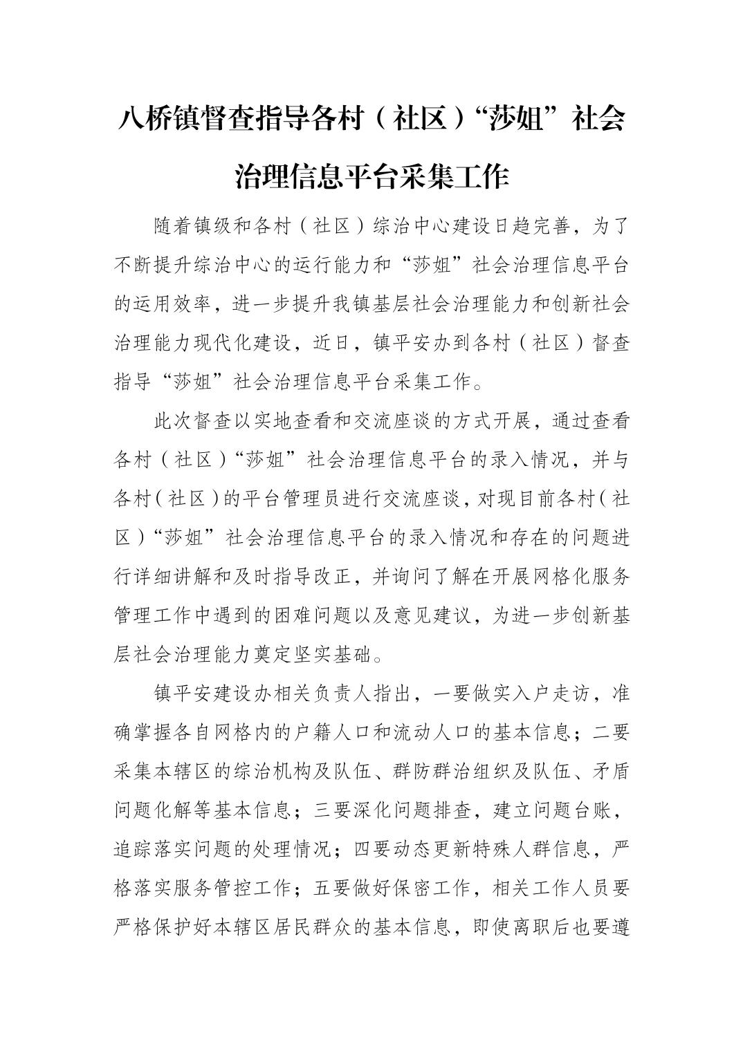 八桥镇督查指导各村(社区)“莎姐”社会治理信息平台采集工作