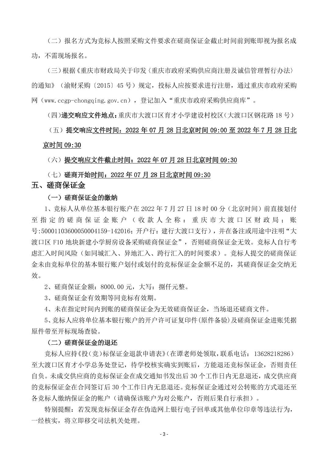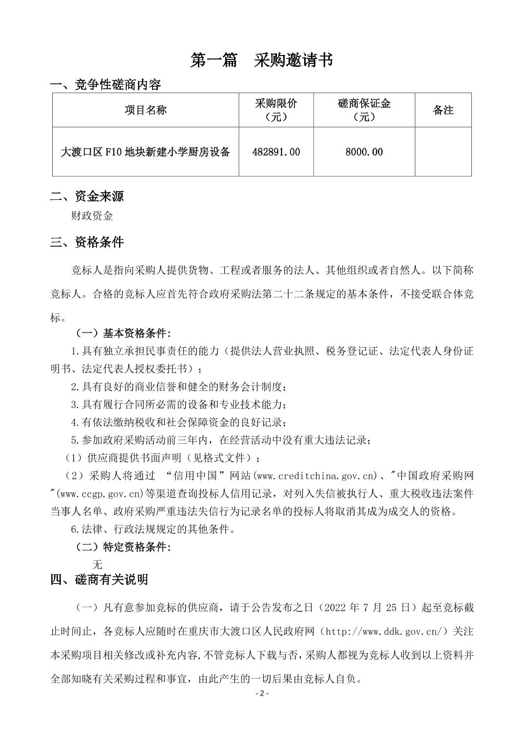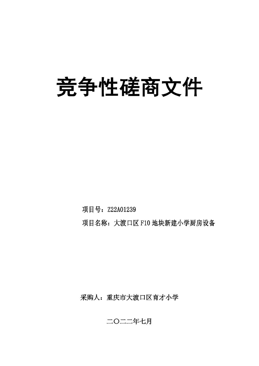 大渡口区F10地块新建小学厨房设备竞争性磋商采购文件