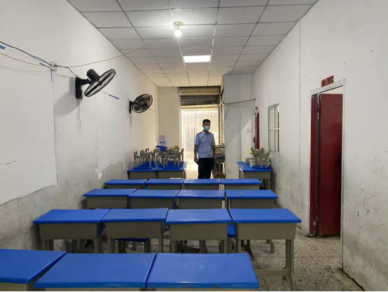 检查人员对培训班内部环境设施进行检查