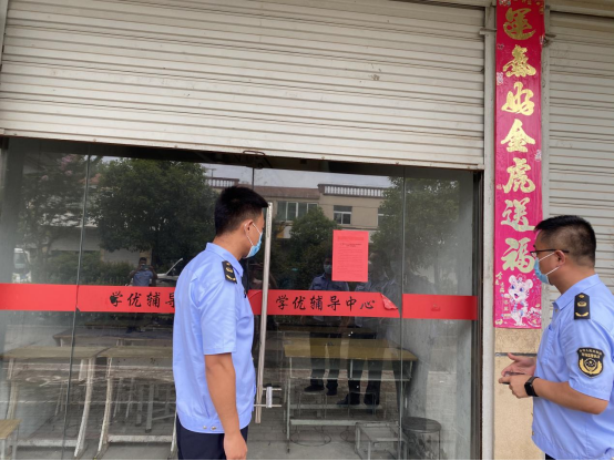 检查组结合前期摸排情况,对有意向开展暑期培训的场所进行了逐一走访,大部分的培训机构均大门紧锁,店内空无一人,对于这些未营业的培训机构,检查组均在门口醒目位置张贴告知书,督促落实防疫举措;但检查中发现个别机构正准备开展办学前宣传工作,检查组已对现场人员进行驱散,并对召集人进行了批评教育,向学生和家长进一步宣传政策。此次专项治理行动共出动执法人员20人次,排查了辖区各类校外培训机构10余家,发放宣传资料500余份。