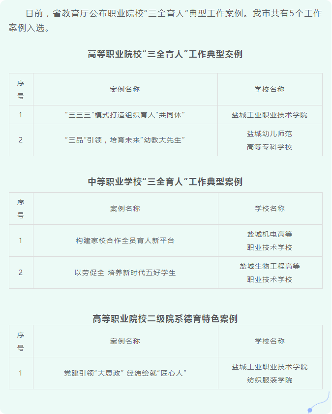 省教育厅公布职业院校“三全育人”典型工作案例