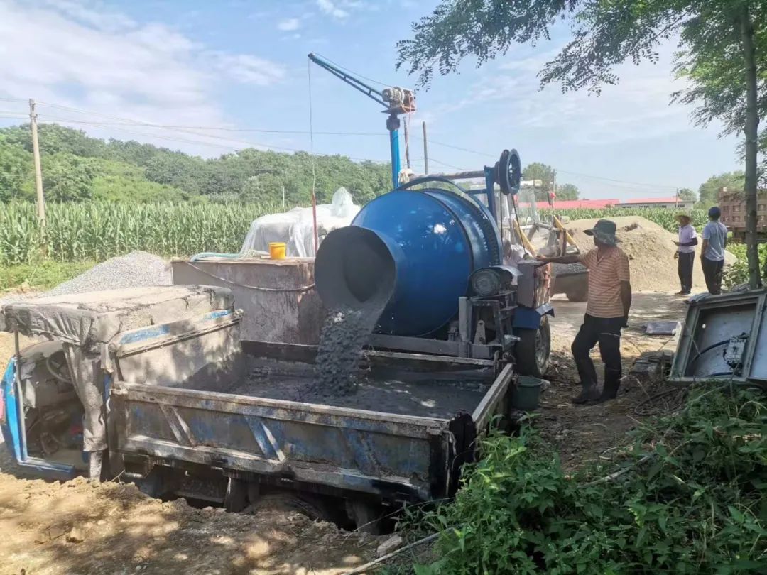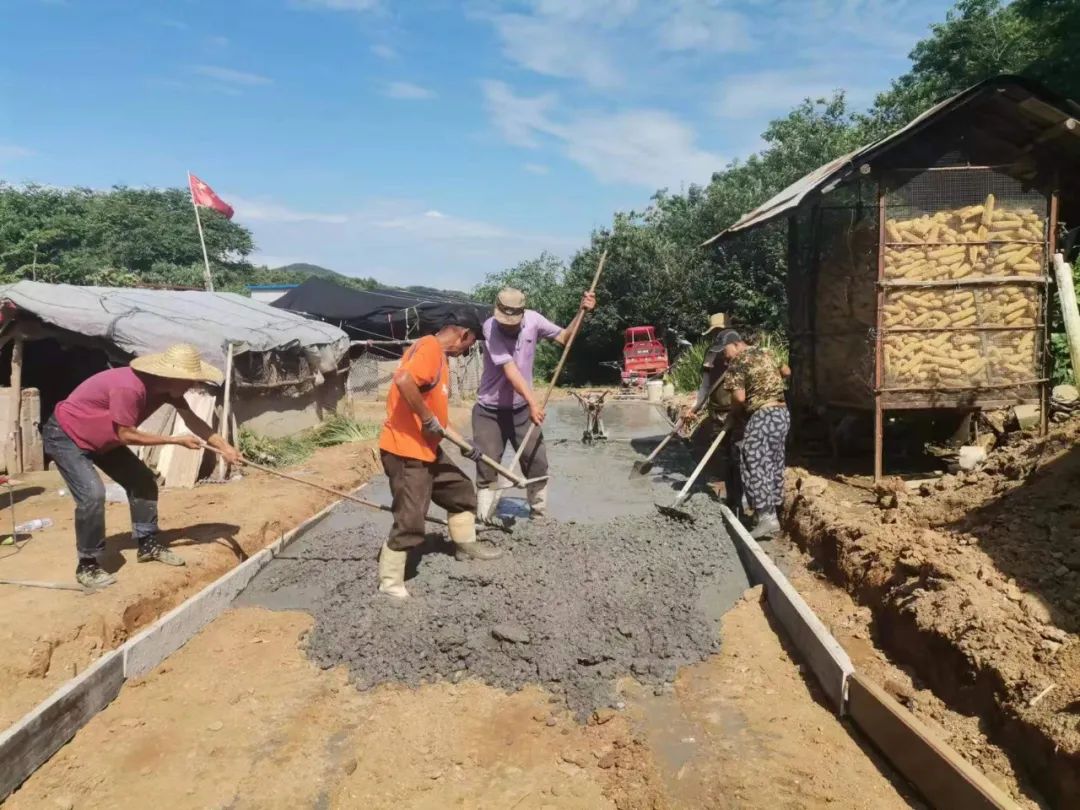 7月25日上午,兰店乡石灰窑村西沟屯水泥路施工现场一片忙碌景象:搅拌机转动着将水泥和砂石料混合,拌合成水泥后再由三轮车运至施工路段,十几名施工人员有的用铁锹铲石子,有的用铁耙摊铺,有的用磨平机给路面磨平……周围围着一些喜笑颜开的村民,一张张朴实的笑脸透露出此刻的喜悦。