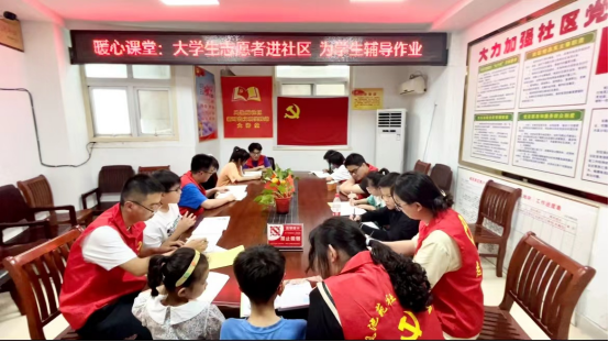 县司法局开展“暖心课堂”活动,组织暑期大学生志愿者走进凤池苑社区,为学生辅导作业。