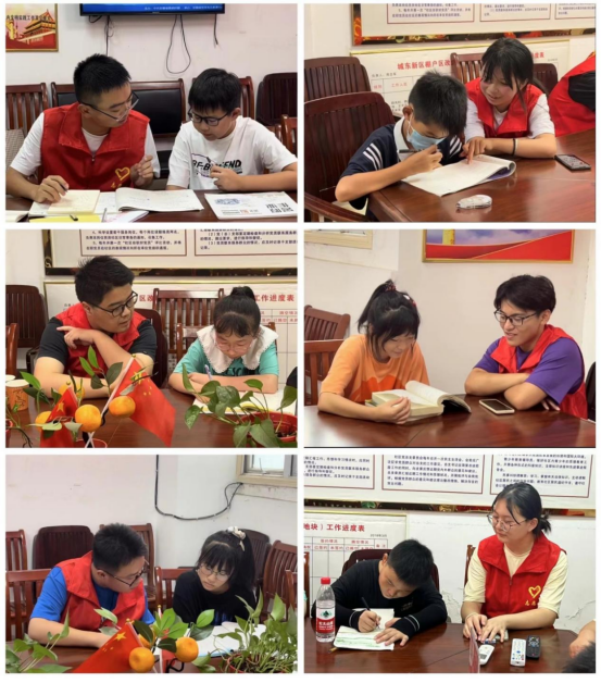 课堂上,来自县司法局的六位大学生志愿者,一一作自我介绍,然后一对一进行辅导。来自社区八位中学生和小学生分别来自于舒城二中、舒城实验小学等,通过认真细致检查他们的暑假作业,针对作业中遇到的疑难进行耐心的指导,在辅导过程中与他们进行互动交流,同时注重培养他们独立思考的能力和良好的学习习惯,告诉他们学会把握学习进度和学习方法。大学生志愿者细致、耐心的辅导,让孩子他们感受到浓浓的关爱。