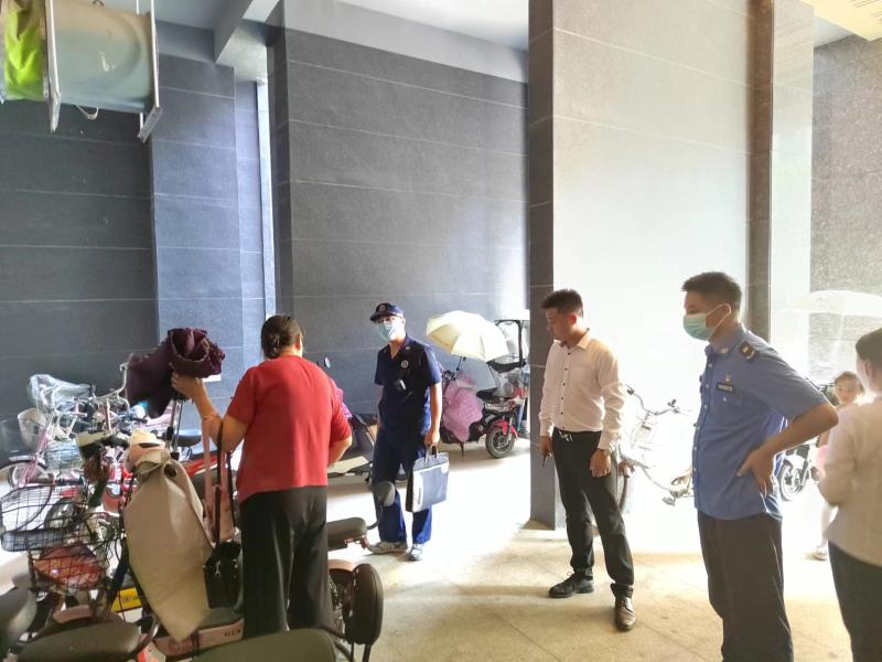 宣传期间,执法人员就小区非机动车停放、消防通道、消防水压及设备完备率等情况进行了现场调查,要求物业服务企业加强楼栋、门厅巡查频次,纠正楼道口非机动车乱停乱放问题。针对小区主要出入口、楼道内违规停放电动自行车,及时上门宣传劝阻,并提醒居民要及时清理楼道间的杂物,强调消防安全的重要性和严重性。
