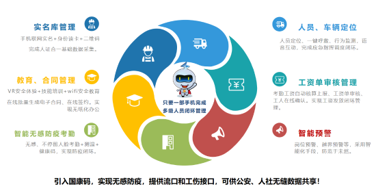 该平台自2020年正式上线,能够提供移动端在线实名认证、在线安全教育、人脸识别健康码检测、人员定位、工资单审核、网上签约、智能预警等重点服务,为远程端直观了解工地现场的作业状况,实现人员统一调度,提升安全文明施工标准化提供了平台支撑。