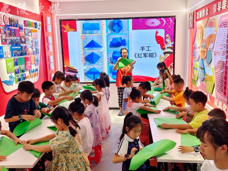 “少年智则国智,少年富则国富,少年强则国强……”活动现场,志愿者们带领现场二十多组亲子家庭学习《少年中国说》手势舞,激昂的旋律、响亮的誓言燃起在场少年的雄心壮志。小小朗诵者何雨姗和退伍老兵陈光富一起朗诵《你的90我的10》,充分展现了当代学生铭记革命先烈的殷殷嘱托,努力奋发向上的决心。集体朗诵《不朽》、红色故事《一袋干粮》、手工《红军帽》等环节更是让红色经典融入少年血脉,激起他们爱国拥军情怀。